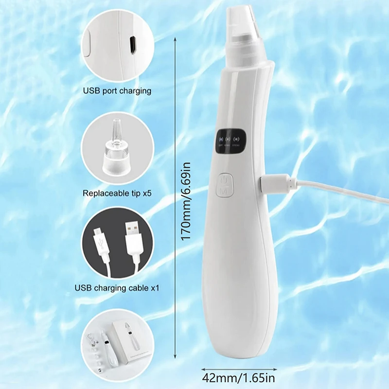 1. Empower your skincare routine with our Blackhead Vacuum. This power-packed tool safely removes blackheads, whiteheads, dead skin, residual makeup, and treats acne without hurting your skin. Improves blood circulation and skin elasticity, results in reduced wrinkles, tightened pores, and smoother fine lines, offering a rejuvenated complexion.