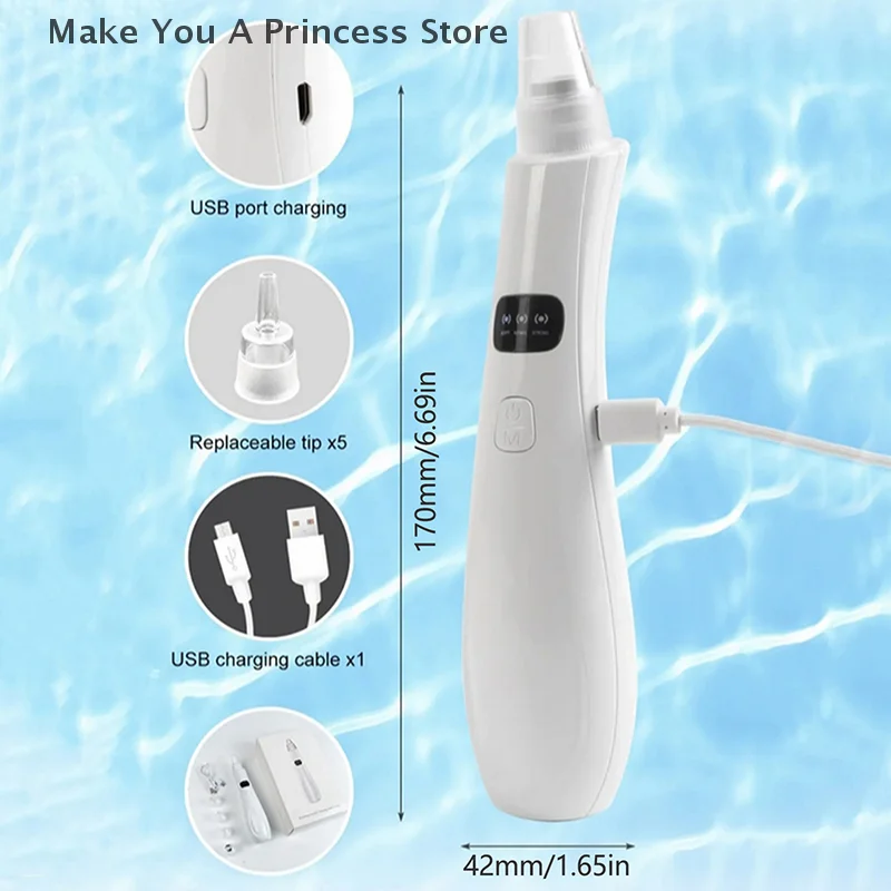 1. Empower your skincare routine with our Blackhead Vacuum. This power-packed tool safely removes blackheads, whiteheads, dead skin, residual makeup, and treats acne without hurting your skin. Improves blood circulation and skin elasticity, results in reduced wrinkles, tightened pores, and smoother fine lines, offering a rejuvenated complexion.