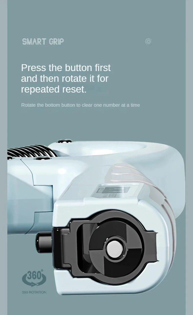 Built-in mechanical counter records the complete number of grips and can be easily reset,