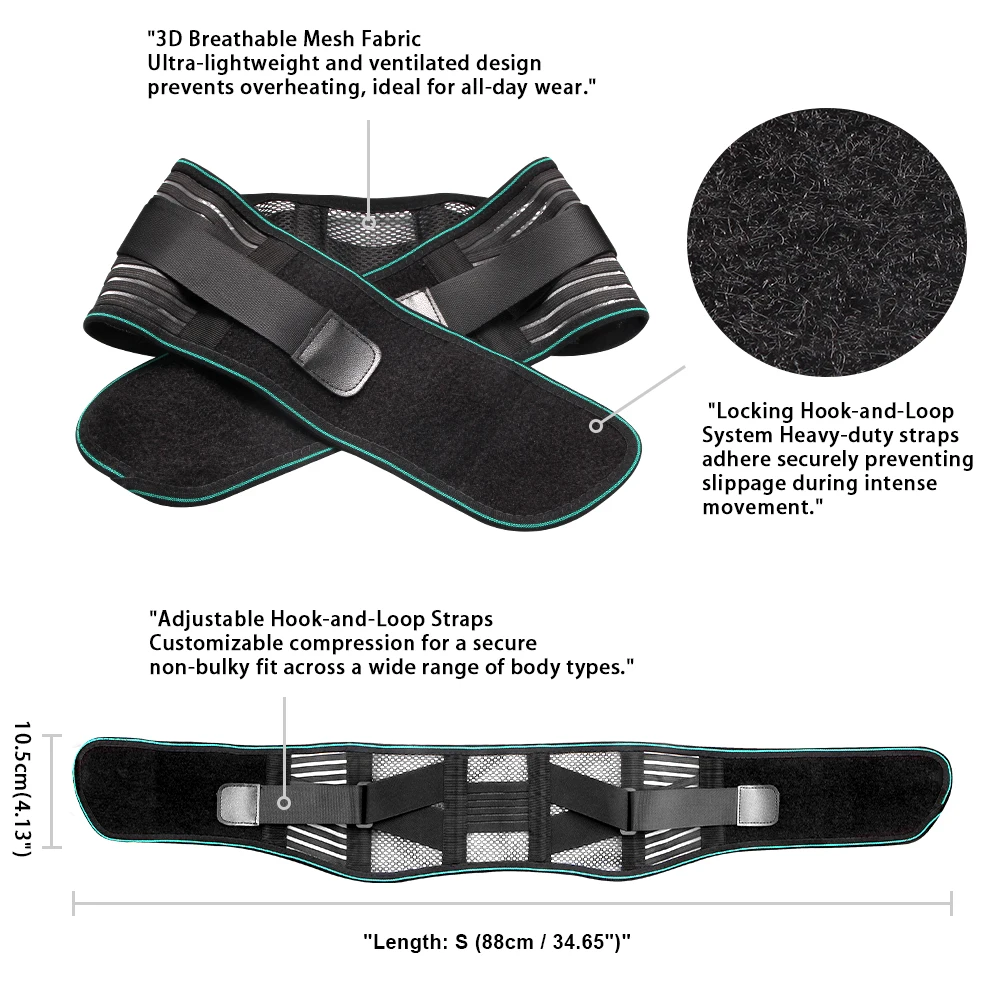 3. COMFORTABLE & BREATHABLE: Our mesh main belt keeps your back from sweating while working out, back brace for lifting at the gym or at work. Comfy back support belt for driving or sitting all day or night.